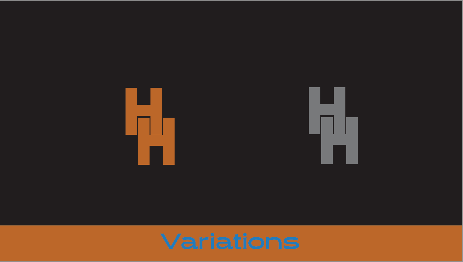 To start tackling this challenge, I initially had a thought to try and incorporate the name of the brand within a tree line but was unable to create a satisfactory design with that self-imposed constraint. After sketching out a variety of other ideas, the first used design for Hidden Harvest's logo incorporated a house alongside the text, built out of the basis of the letter H as a way to draw a connection with the brand and home cooking, since the ingredients are shipped directly to the customer. However, when transiting that logo into the motion component, I ran into issues trying to incorporate the H building out to become a house in a satisfactory manor, leading to the final design shown below. This design uses a mix of iconography with the two H letters being pulled from the interlocking variant logo, showcasing cohesion between logos and a contrast in fonts with "idden" being in cursive to try and loosely make it appear elusive, since the ingredients used in the company are from overstock, among other sources. Furthermore, "harvest" is in a more uniform font to showcase that even if the ingredients are from a non-traditional source, they are high quality and able to be used for cooking in any regard. The colors chosen are meant to showcase a more earthy-esque visual design with oranges and browns with a black secondary to make the brighter colors pop.
